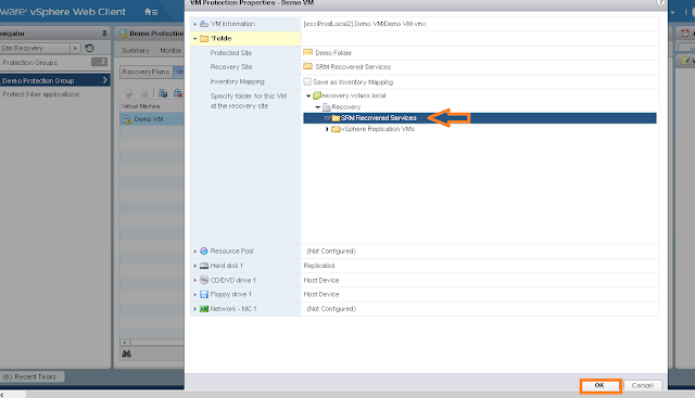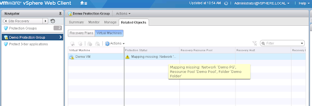 Select VM in the Protection Group > Click on Configure Protection > You can notice for Folder, Resource Pool and Network mapping is not configured.