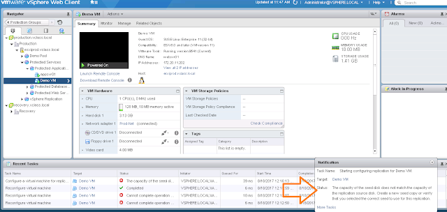 If you are trying to Increase the VM Disk Size that is Protected by vSphere Replication Using SRM, you will get this error “vSphere Replication does not support changing the length of a replicated disk.”.