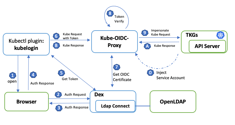 VMware越来越多的客户都在使用vSphere with Tanzu 中的Kubernetes的服务TKGS(原名Guest Cluster)来部署企业的Kubernetes工作负载。要在生产环境中使用K8S集群,一般来说需要和企业的其他系统环境进行有机的集成,例如网络,存储等硬件资源环境以及其他IT软件系统。有许多合作伙伴和客户最近向我咨询:如何将企业原有的用户身份管理系统和TKGS进行有机的集成。 这是一个非常合理的需求,谁也不会希望看到新上的系统和原有系统有两套不同的需要管理的用户访问控制系统。通常来说,企业用户会使用OIDC来集成Kubernetes的用户管理和认证系统。OIDC是(OpenID Connect)的缩写,是Kubernetes原生系统就支持的用户身份认证的扩展机制。不少其他的K8S系统都支持OIDC的扩展,例如IBM的OpenShift, VMware另一款的K8S产品(VMware Tanzu) (注意: VMWare Tanzu和vSphere with Tanzu是两个不同的产品)。 但是TKGS并不支持OIDC的扩展。在TKGS集群里,用户管理机制是vSphere SSO。(如果想详细了解vSphere with Tanzu,以及缺省用户管理机制的知识,请参考我之前的文章:vSphere with Kubernetes实战之:用户访问控制)。用户想要访问TKGS集群,一定要在vCenter Server中先创建SSO用户账号。 TKGS是款受管的K8S集群产品。所谓受管,意味着该集群的Master节点和worker节点都是系统替你维护的,集群网络配置,存储挂载,节点伸缩,扩展以及故障恢复这些高可用特性都是系统自动管理的。受管的K8S产品给客户带来很大的便利条件,让客户将关注的重点放在自己的工作负载就行了。但是受管的集群的缺点就是灵活性,它的Master节点和Worker节点的配置是实现定义好的,不能随意更改。这也是TKGS不能修改Master节点的配置使它支持OIDC的身份管理扩展的原因。其实很多受管的K8S产品也一样,例如Google的GKE,AWS的EKS等等,它们的K8S用户身份管理系统也只能使用自己的云管身份系统,也不能使用OIDC。 本文介绍了5种解决方案,在这种受管的TKGS环境中,如何来实现将企业原有的用户身份管理系统和TKGS集群(Guest Cluster)进行有机的集成: 等待vSphere7的未来版本中更强的Identity...