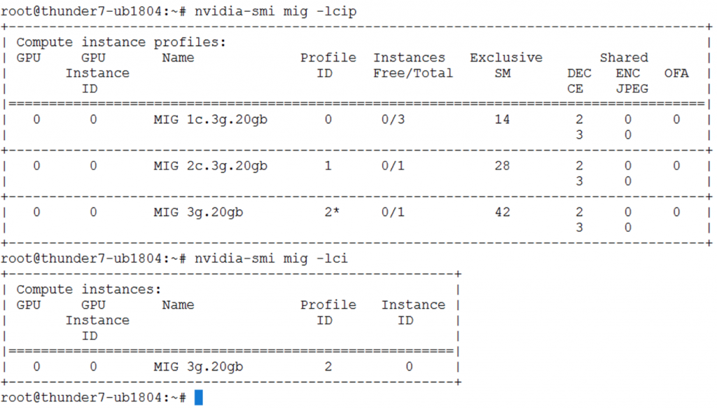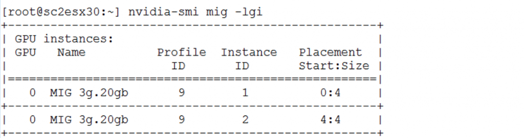 Having done that, we now see our two new Compute Instances, differentiated from each other by their GPU Instance ID.