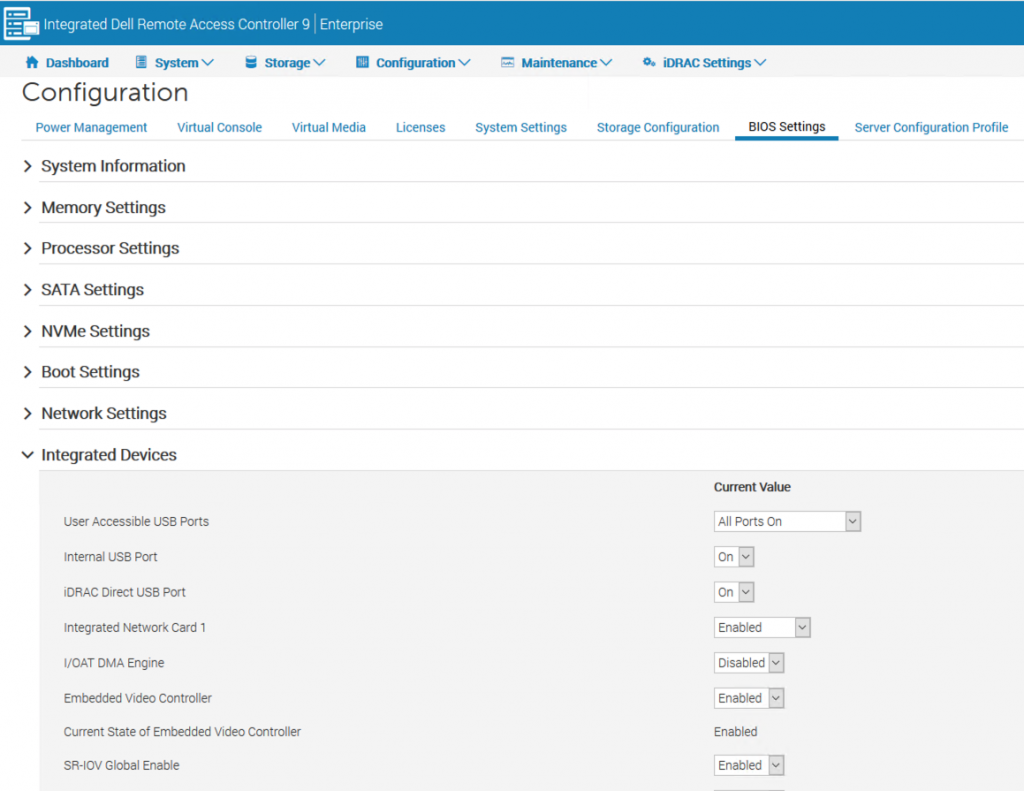 Figure 2: Configure SR-IOV Global using the iDRAC user interface on a Dell server.