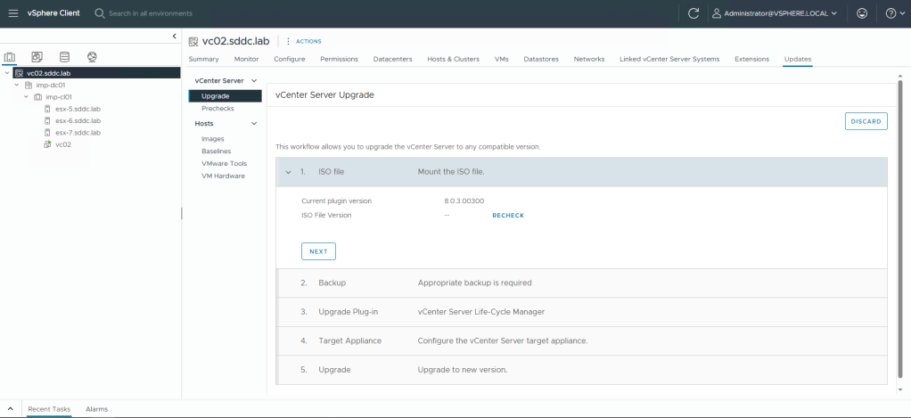 Here are the steps for importing vSphere into VCF and upgrading from SDDC Manager.