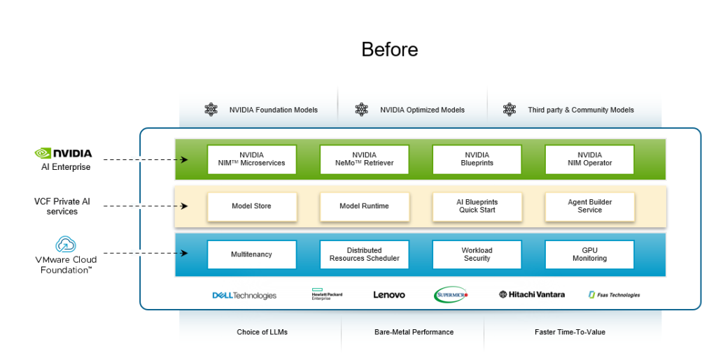 Beyond the core capabilities, VMware Private AI Foundation with NVIDIA is expanding its ecosystem through strategic partnerships, further enriching the value proposition for enterprises. We are delighted to welcome the following partners to the VMware Private AI ecosystem