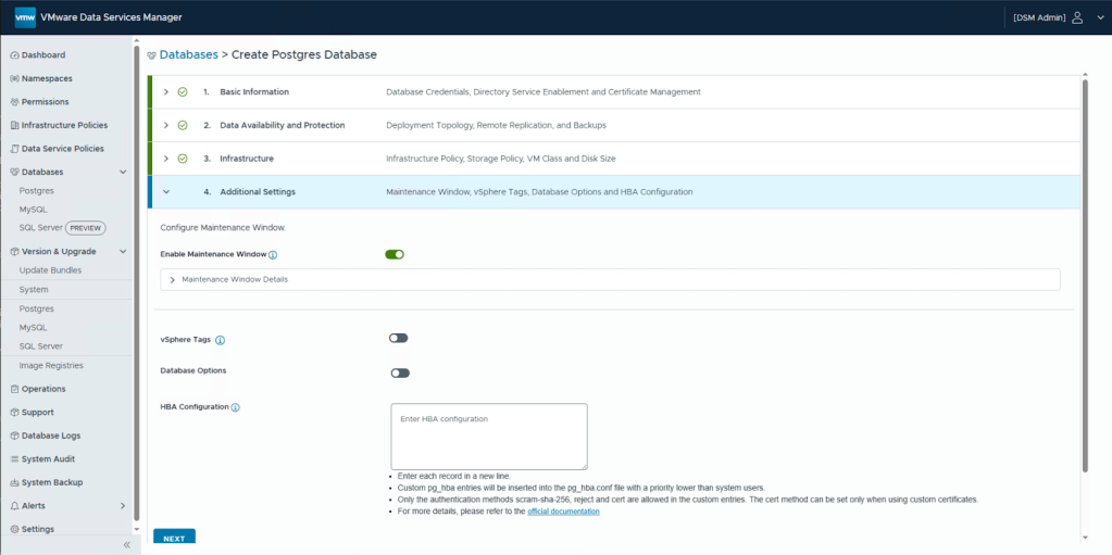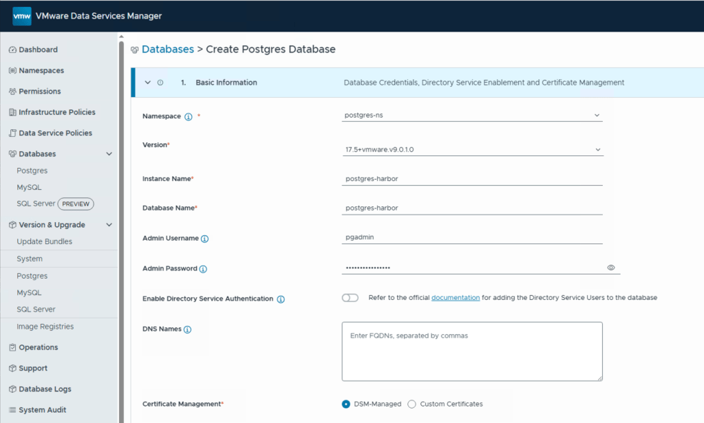 Step 1: Provisioning PostgreSQL with VMware DSM