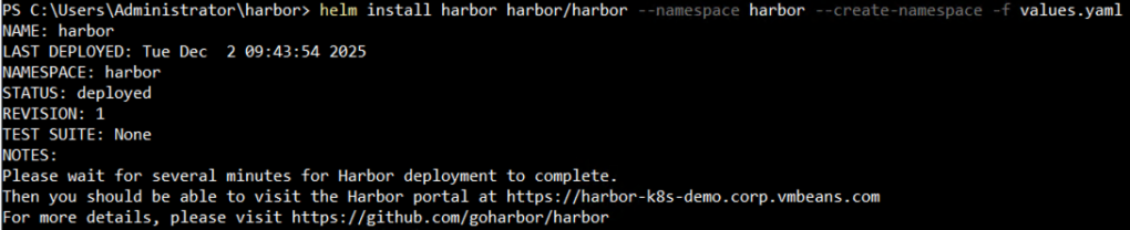 With the values.yaml file updated, you can now deploy Harbor to your Kubernetes cluster.