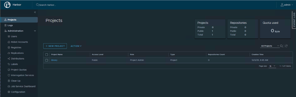- Test Harbor Access: Access the Harbor UI via the configured Load Balancer service. Log in using the credentials configured in