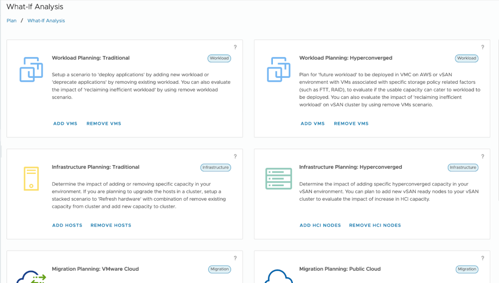 The newest VMware Cloud Foundation release enhances its What-If Scenario Planning. This now includes the ability to visualize how adding new Virtual Machines (VMs) affects new Clusters.
