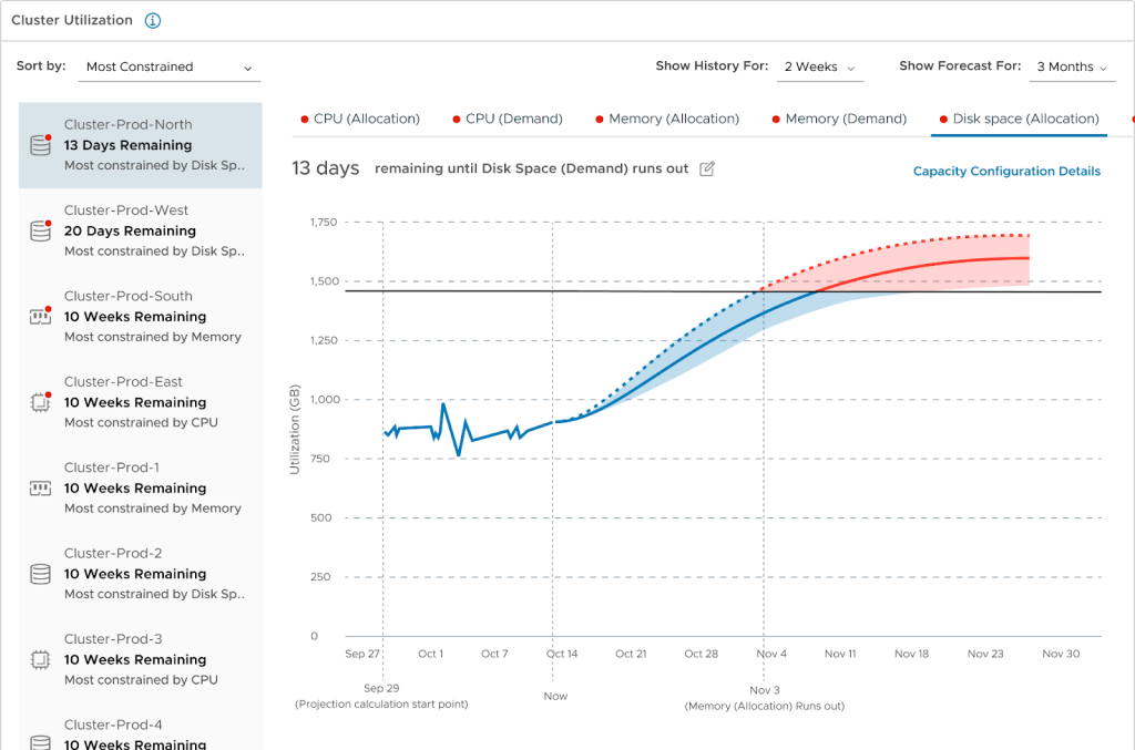 Figure 1: Capacity forecast showing cluster utilization