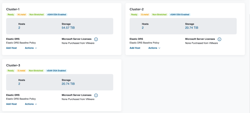 You can now also view the vSAN storage configuration from the cluster cards within your SDDC details from within the VMC Console UI: