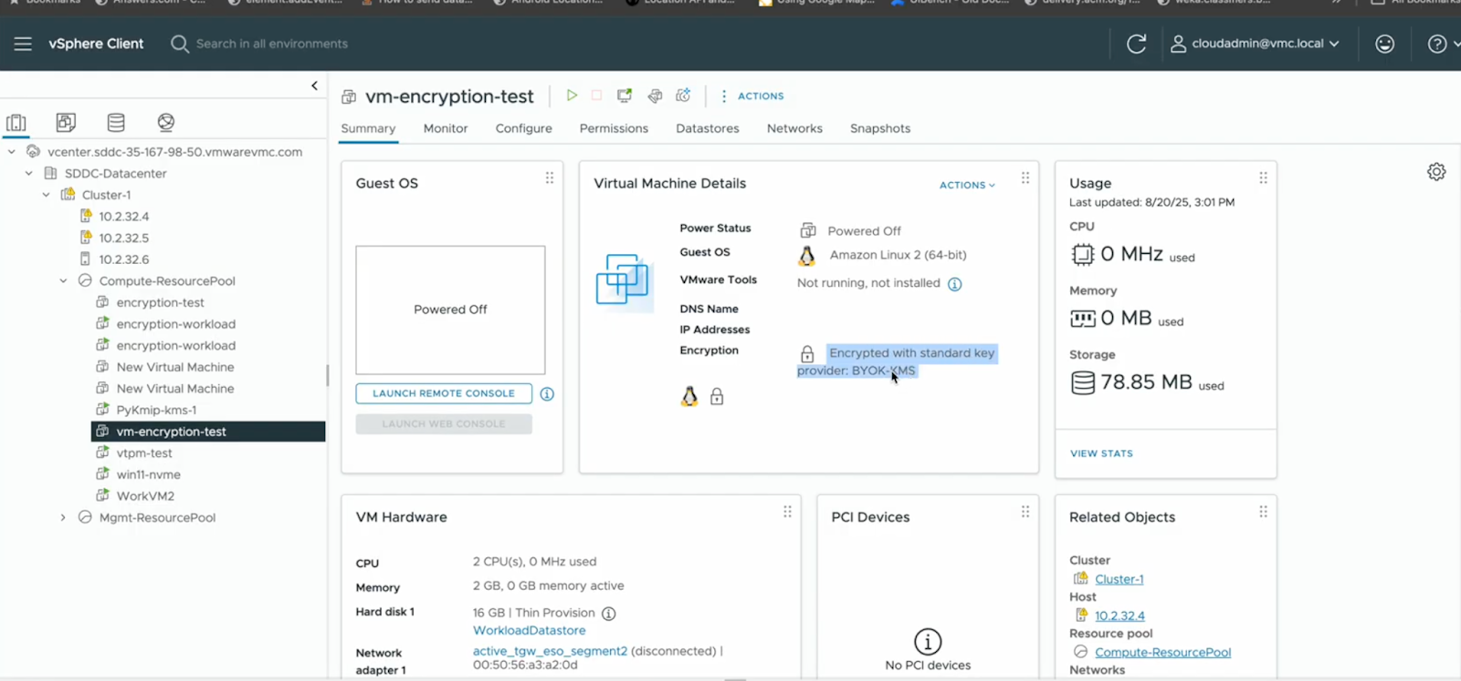 We are excited to announce that VMware Cloud on AWS now supports Bring Your Own Keys (BYOK) for VM encryption as part of the new version 1.26 release! This capability enables you to integrate your own KMIP-compliant Key Management System (KMS) directly with VMware Cloud on AWS, giving you complete ownership and control of the encryption keys that protect your workloads. This feature is available now for all SDDCs running version 1.26 and above.