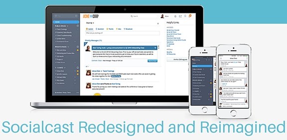 The new Socialcast user interface helps users speed up workflows and collaboration with simplified navigation and intelligent sorting. Users can quickly search for every conversation they have on Socialcast, both group and one-to-one chats, on the redesigned left navigation bar. Conversations with new activity rise to the top so users can focus on what matters most as soon as they log in from their desktop or mobile device.