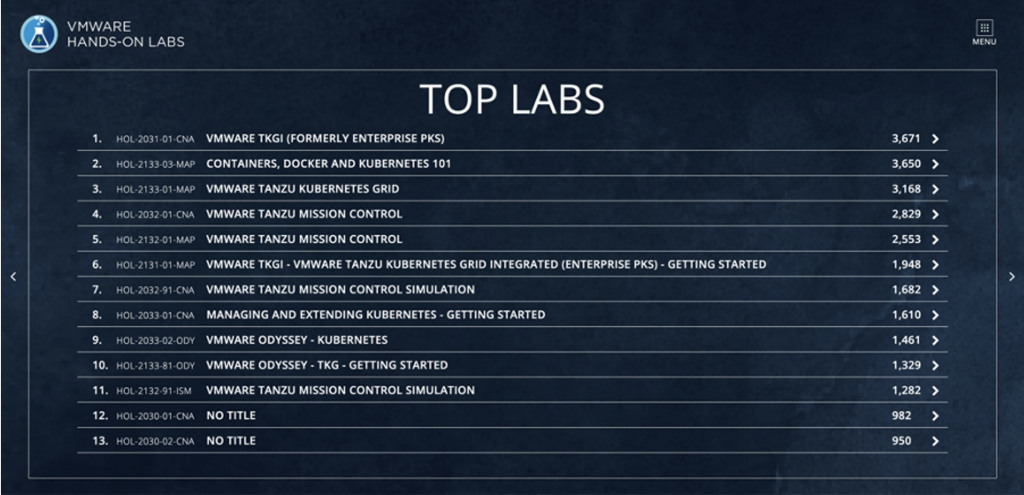 For our customer base, many of whom are grappling with the transition from traditional application stacks to modern cloud native applications. It’s no easy task to determine if many of the products in this space will truly deliver value to your IT organization. The faster we help you determine the value that VMware is providing in this space the faster we can help you see how we can help you achieve better business outcomes. Let VMware jump-start your value exploration journey with the many modern application labs we have available.