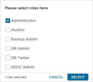 En el siguiente ejemplo, estamos invitando a un “nuevo usuario” ficticio con acceso completo a todas las funciones de rol de administrador necesarias para VMware Cloud Disaster Recovery y VMware Cloud on AWS.