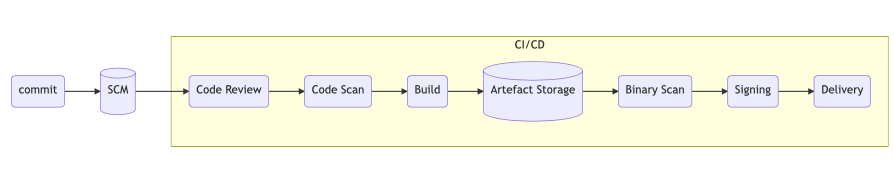 This is a generalization, of course, but it does make it easier to reason about typical software development workflows. One thing to notice right away is what’s missing: the 0th step where an engineer is writing code that they then commit. The software supply chain starts with developers and development systems, and it’s a moment that’s open to vulnerabilities. So how do we protect our own contributions?