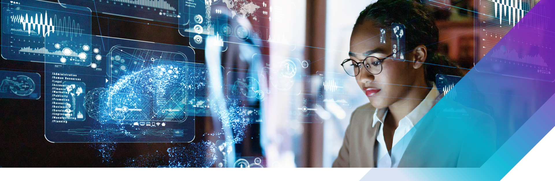 Woman looking at future technology holograms