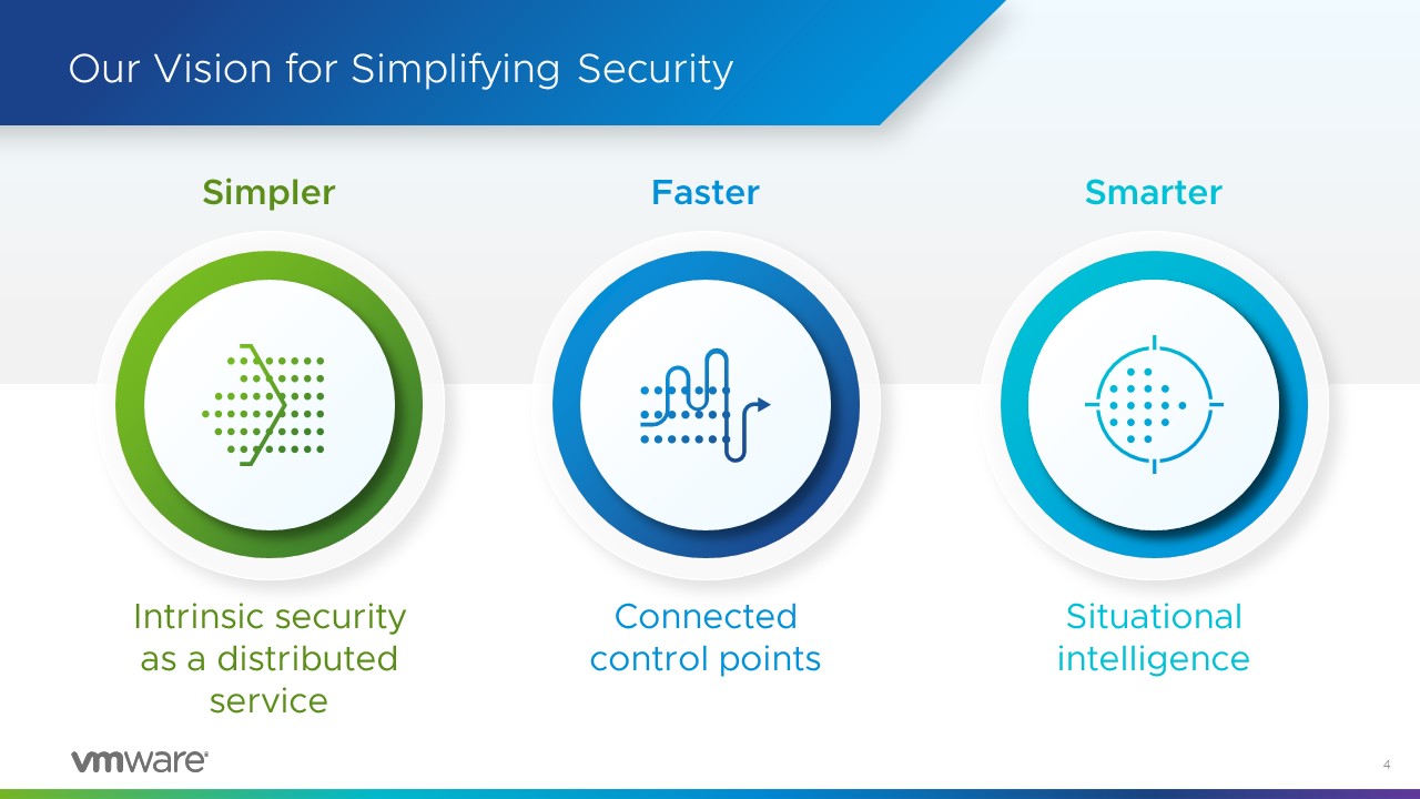“We have a once-in-a-generation opportunity to truly redefine the industry’s approach to security in this new world order. VMware is in a unique position to make security simpler, faster and smarter because we can distribute security services into the fabric of the way we work.”