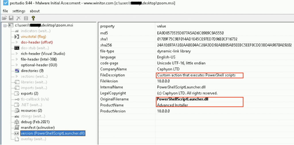 The operators of BatLoader malware leverage SEO poisoning to lure potential victims into downloading malicious Microsoft Windows Installer (.msi) files. The msi files can either be directly downloaded, often found in the /Downloads folder or are included in a .zip archive file. The files masquerade as other common legitimate software installers – e.g. zoom.msi, Teamviewer.msi, anydesk.msi – but are actually a copy of the free PDF creator novaPDF. The novaPDF installer is edited using the tool Advanced Installer to add a PowerShellScriptInline custom action that executes a malicious PowerShell script. More on how to create PowerShell custom actions with Advanced Installer can be found here.