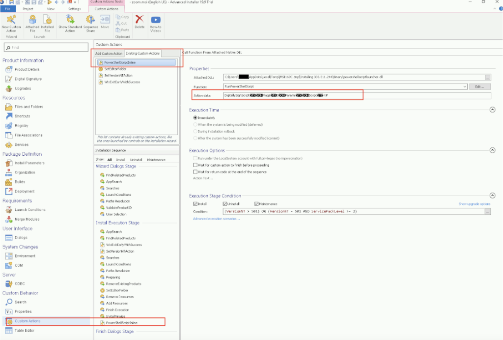 Figure 6: PowerShellScriptInline custom action data represents the PowerShell code