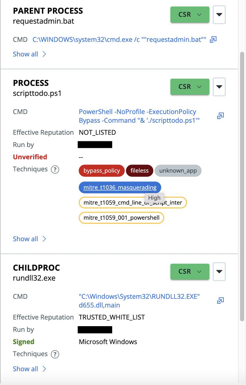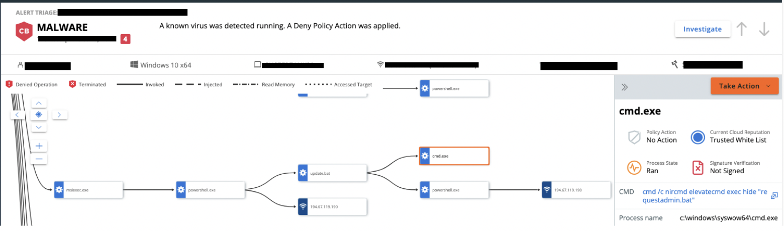 Batloader is a great example of the benefit of our MDR product. As our team has detailed, this malware variant is much stealthier and embeds itself quite thoroughly within the impacted host device. The Carbon Black sensor is able to detect specific behaviors of the malware and generate alerts for further analysis. The alerts in themselves did not paint a holistic picture of the attack. This would be a challenge for any team that does not have the resources to conduct an in depth threat hunt such as those provided by MDR.