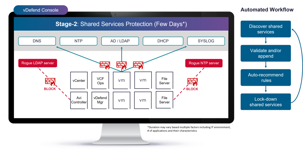When deploying Zero Trust to quickly address security gaps and improve segmentation posture in a brownfield or greenfield environment, customers need a prescriptive, multi-stage segmentation workflow designed to progressively secure east-west traffic in the VMware Cloud Foundation (VCF) private cloud. vDefend delivers Distributed Firewall (DFW) 1-2-3-4* — an automated workflow that helps security administrators systematically strengthen their private cloud security posture. Customers can now simplify and fast-track the path to Zero Trust with a structured sequence of segmentation phases — from protecting critical infrastructure services to securing traffic between zones, and ultimately achieving application-level micro-segmentation. Additionally, over time, security policies can become bloated and inefficient. The new Firewall Rule Analysis feature efficiently manages this by analyzing DFW rules, so organizations can ensure their security policies are lean and effective.