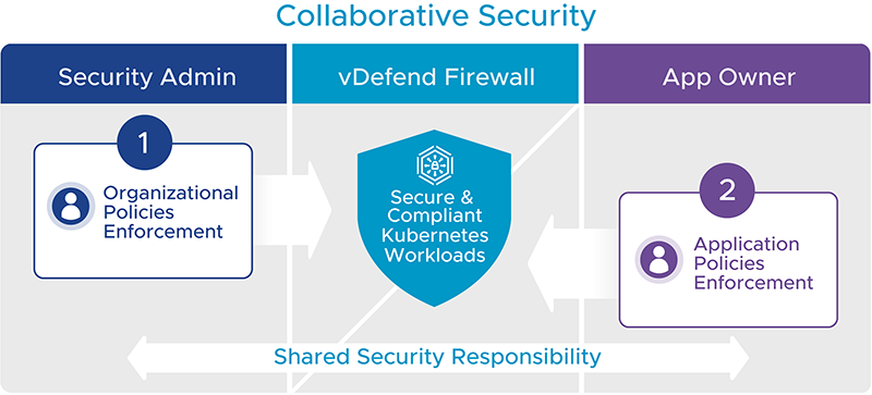 In modern enterprises with Kubernetes workloads, security often becomes a shared responsibility between centralized security teams and application owners. While security teams typically define the organization’s overarching security model, application owners frequently control the security policies for their specific applications. While this ops model offers flexibility, it could create security gaps. vDefend addresses this by enabling security administrators and application owners to co-own container security policies through a central management view. Security administrators can control cluster-level firewall policies (ingress and egress traffic for a VKS cluster) to focus on environmental and infrastructure security. By utilizing vDefend’s distinct firewall categories, they can ensure these essential policies are always enforced first. Meanwhile, application owners retain complete autonomy to define application-tier Kubernetes networkPolicies without requiring explicit approval from security administrators. This collaborative approach ensures comprehensive protection across the board.
