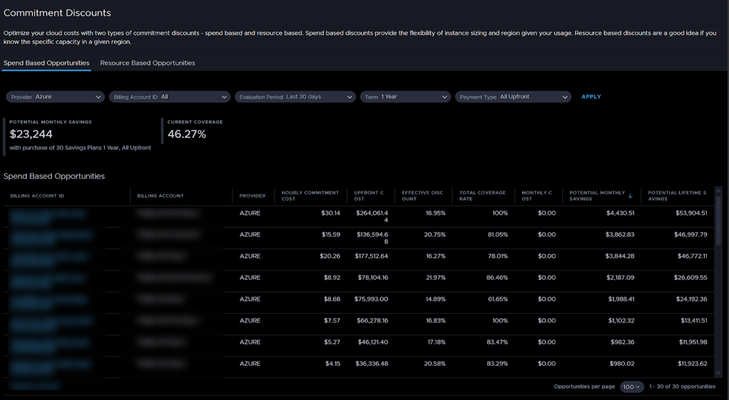 Please note that Azure services – such as Azure NetApp Files, Azure Blob Storage, Azure Backup etc. have recently been enabled for commitment purchase by Microsoft Azure. The CloudHealth platform will incrementally incorporate these services into coverage and utilization calculations to ensure ongoing accuracy and completeness.