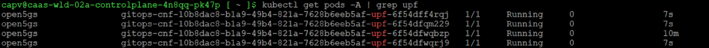 - Automated scaling: The GitOps controller will recognize the desired state change, and the CNF scaling process will commence, resulting in the Open5GS UPF pod being scaled to 4 replicas.