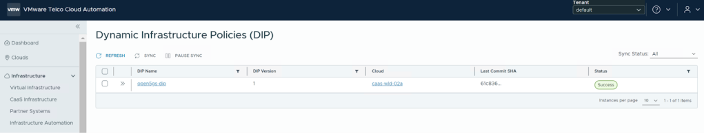 - If the GitOps application has progressed, SSH into the CaaS cluster. The CaaS cluster IP details can be found under the CaaS Infrastructure section for the specific cluster in the Telco Cloud Automation UI.