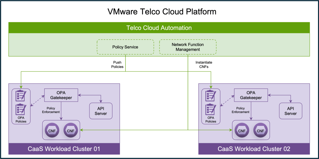 VMware Telco Cloud Platform 5.1 now features a centralized policy governance framework, leveraging OPA Gatekeeper with integrated Kubernetes hardening policies. These policies are based on recommendations from the NSA and CISA.