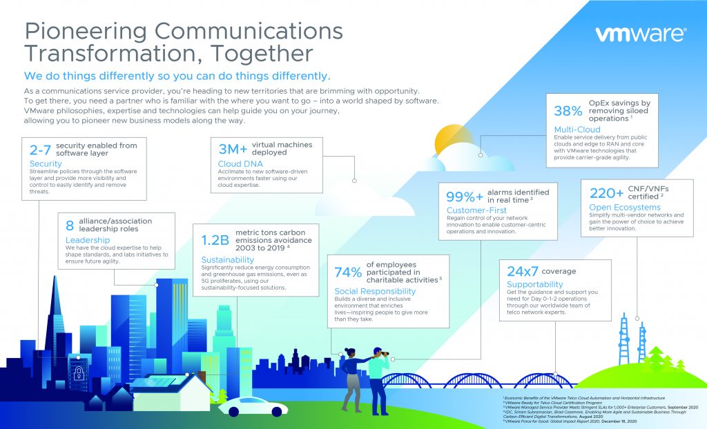 At VMware, we provide some of the best digital capabilities in the industry. But that’s not why our CSP customers love working with us. Rather, it’s because our DNA—our reason for being—aligns more closely with their transformation vision than anyone else. Let’s take a closer look at why.