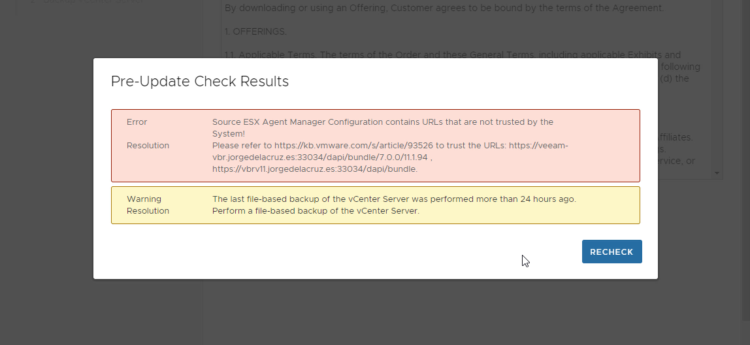 vcenter-error-upgrade-sourceesxmanager-001-750×345.png vcenter-error-upgrade-sourceesxmanager-001-750x345.png November 28, 2023 Related Posts:10 VMware Cloud Foundation 9 Enhancements:…Reducing Harbor Deployment Complexity on KubernetesIntegrating VMware Data Services Manager with Harbor…FinOps in VMware Cloud Foundation Deploy VMware Private AI Services in Minimal VMware…Harbor: Your Enterprise-Ready Container Registry for… Related Articles Cloud Infrastructure Why a Single Platform for VMs and Containers Is the Future of Modern IT audrey bian January 6, 2026 Modern Apps What Good Software Supply Chain Security Looks Like for Highly Regulated Industries rita manachi and william jimenez January 6, 2026 Cloud Infrastructure VCF Breakroom Chats | Episode 81 Streamlining Operations: Inside the VCF 9.0 Unified Platform vmwareblogs January 5, 2026 Cloud Infrastructure VCF Breakroom Chats Episode 79 vmwareblogs January 5, 2026 Cloud Infrastructure VCF Breakroom Chats Episode 80 vmwareblogs January 5, 2026 Cloud Infrastructure NVMe Memory Tiering Design and Sizing on VMware Cloud Foundation 9 Part 5: Deployment Scenarios (Greenfield, Brownfield, Nested Lab) vmwareblogs December 29, 2025 International vSAN ReadyNode の選び方と構成のカスタマイズ – Broadcom サポートサイト利用ガイド yuki kawamitsu December 24, 2025 Modern Apps What’s Up with Bitnami? Unraveling the Myths About Your Favorite Pre-Packaged Open Source Software Catalog rita manachi and william jimenez December 22, 2025 Cloud Infrastructure 5 Key Principles of Modern Applications jad el-zein December 19, 2025 Cloud Infrastructure VCF Breakroom Chats Episode 77: Orchestrate like a Pro – Event Subscriptions and Extensibility for Every Admin with VCF 9.0 alina thylander December 19, 2025 Cloud Infrastructure Upgrading VMware Cloud Foundation 5.2 to 9.0: The Top 10 Questions Answered jonathan mcdonald December 18, 2025 Cloud Infrastructure VCF Breakroom Chats Episode 76: Cloud Admin Fast Track – Learn Infrastructure as Code the Easy Way with VCF 9.0 alina thylander December 17, 2025 Cloud Infrastructure AI and Load Balancing: Rethinking Network Infrastructure for the AI Era umesh mahajan December 17, 2025 Cloud Infrastructure Deploy VMware Private AI Services in Minimal VMware Cloud Foundation Environments Phoebe Kim December 17, 2025 Company From Ransomware to Load Balancing: These Explore Sessions Are Getting the Most Replays meisha p. December 17, 2025 Modern Apps Tanzu Platform: Still the Best Place for Enterprise Java Apps Cora Iberkleid December 16, 2025 Cloud Infrastructure NVMe Memory Tiering Design and Sizing on VMware Cloud Foundation 9 Part 4: vSAN Compatibility and Storage Considerations dave morera December 16, 2025 Cloud Infrastructure The New Paradigm: MLPerf 5.1 Confirms VCF is the Future of AI/ML Performance uday kurkure and lan vu December 15, 2025 Cloud Infrastructure What to Look for in Network Switches for VMware vSAN vmwareblogs December 12, 2025 Cloud Infrastructure VCF Breakroom Chats Episode 78: Build, Deploy, and Scale with vSphere Kubernetes Service 3.5 audrey bian December 11, 2025