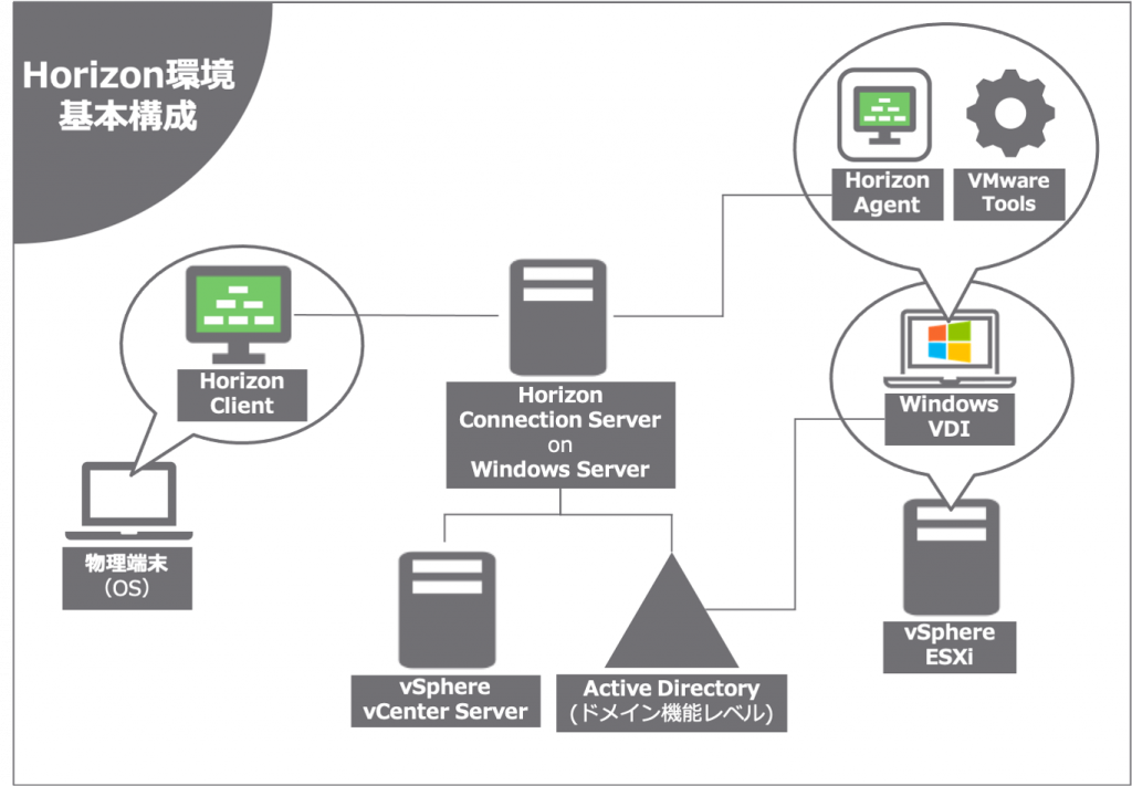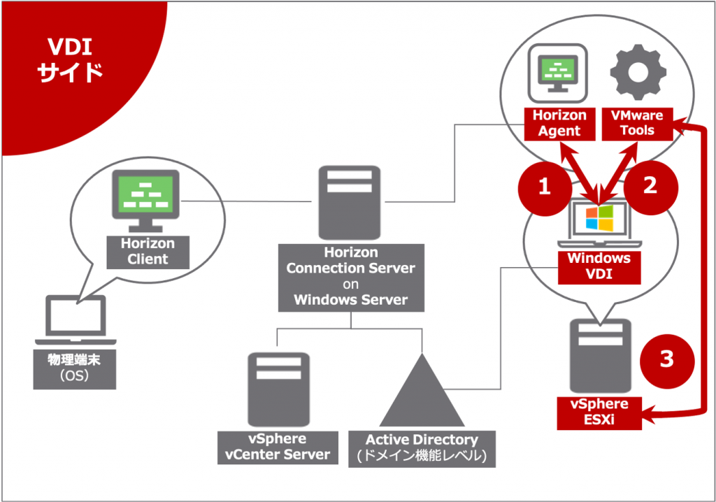 VDI OS と Horizon の互換性とは、厳密に言うと、VDI OS とそこにインストールされる Horizon Agent の互換性を指します。