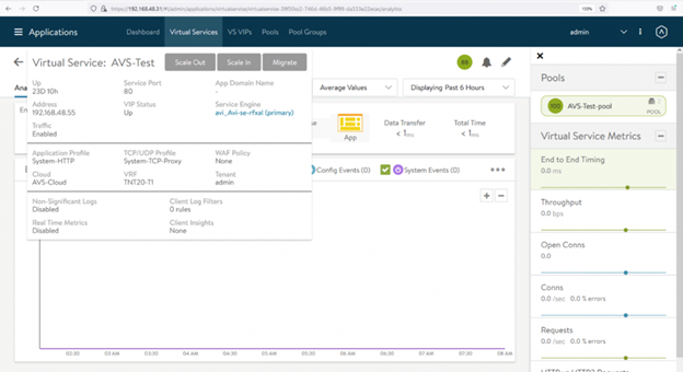 Virtual Service が作成されると、NSX ALB Controller が SDDC 内に Service Engine を展開します。それらが稼動すると、Virtual Service でこれらの Service Engine を介してトラフィックを処理する用意が完全に整ったことになります。
