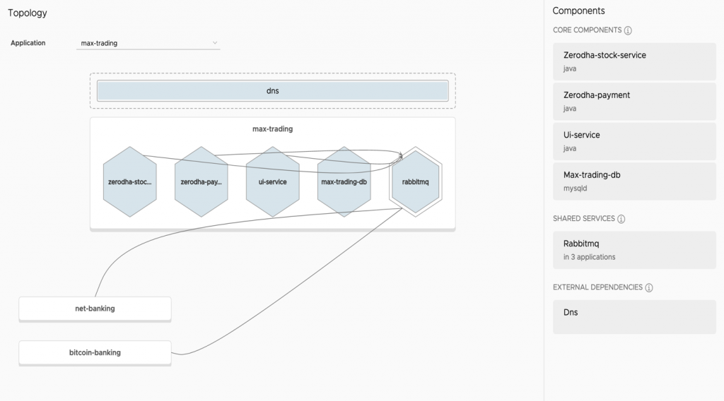 Application Transformer for TanzuはvCenter Server APIを利用し、vSphereまたはVMware Cloudベースのデータセンター全体を解析します。さらに、VMware vRealize Network Insightとの統合により、vRealize Network Insightのフローを活用して、アプリケーションの依存関係を可視化する上で重要なエンドツーエンドのアプリケーショントポロジーを自動生成できます。