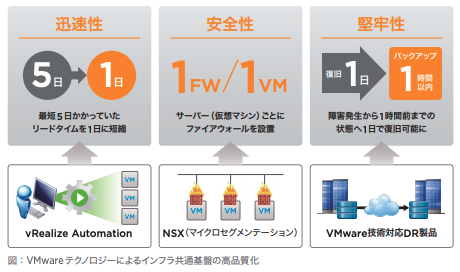 VMwareのテクノロジーを活用して“自動化”を推進することにより、既存の業務の整理や見直しが進み、その結果サービス品質の向上や業務の最適化につながると考えています