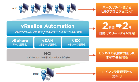 2週間かかっていた仮想マシンの構築のリードタイムは2日まで短縮されました。
