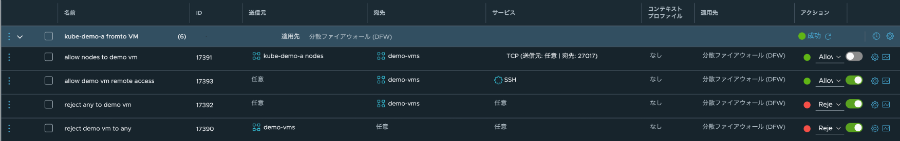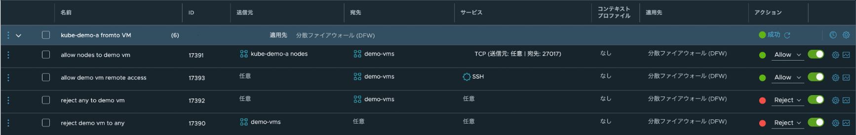 このように、Antrea〜NSX 連携機能を使えば Kubernetes クラスタ全体と外部 VM とのアクセス制御が可能です。